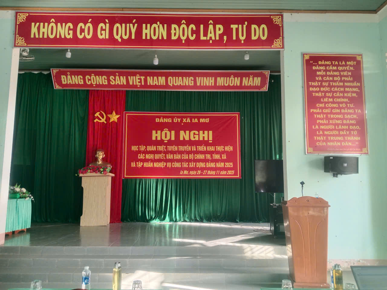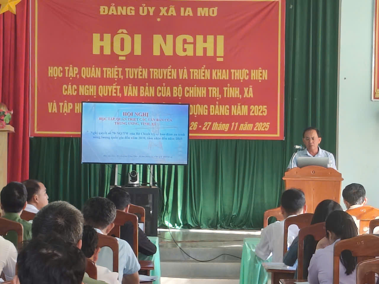 Từ ngày 26/11/2025 đến ngày 27/11/2025, Ban Thường vụ Đảng ủy xã Ia Mơ tổ chức Hội nghị học tập, quán triệt, triển khai thực hiện các Nghị quyết của Bộ Chính trị, của Tỉnh uỷ và của Đảng bộ xã cho toàn thể đảng viên thuộc các chi bộ cơ sở trực thuộc; Tập huấn nghiệp vụ công tác xây dựng Đảng năm 2025 cho cấp ủy các chi bộ trực thuộc Đảng bộ xã Ia Mơ. Tham dự Hội nghị có đồng chí Trương Công Tấn - Bí thư Đảng ủy, Chủ tịch HĐND xã; đồng chí Lê Thế Đô – Phó bí thư thường trực Đảng ủy; đồng chí Trần Quyết Thắng- Phó bí thư Đảng uỷ, Chủ tịch UBND xã; đồng chí Rơ Mah Đắc - Ủy viên Ban Thường vụ Đảng ủy, Trưởng Ban Xây dựng Đảng; đồng chí Nguyễn Thành Trung- Ủy viên Ban Thường vụ Đảng ủy, Chủ nhiệm UBKT Đảng uỷ; cùng các đồng chí là Bí thư, Phó bí thư, Chi uỷ viên các chi bộ trực thuộc và toàn thể đảng viên trong Đảng bộ xã được triệu tập tham dự.