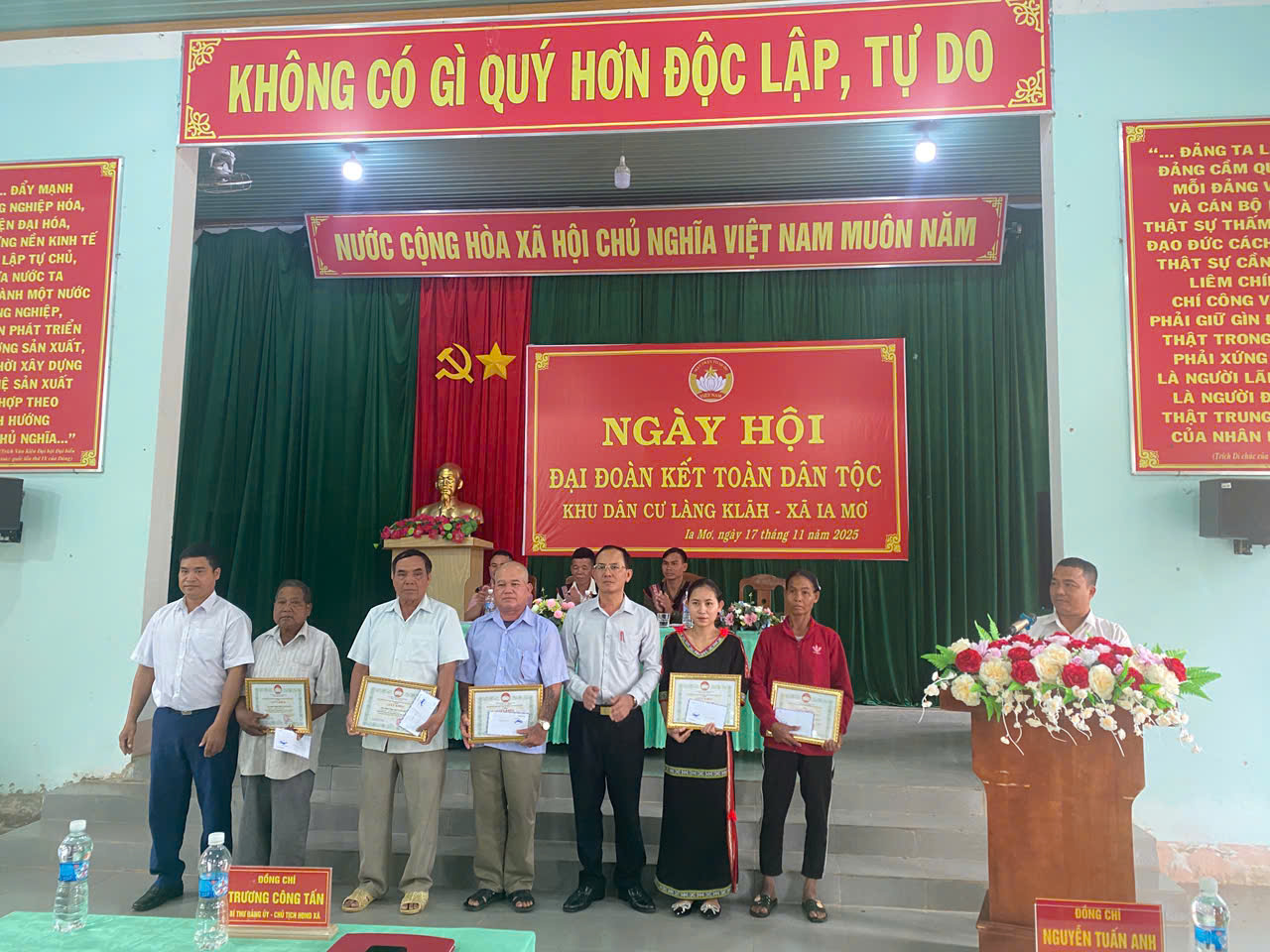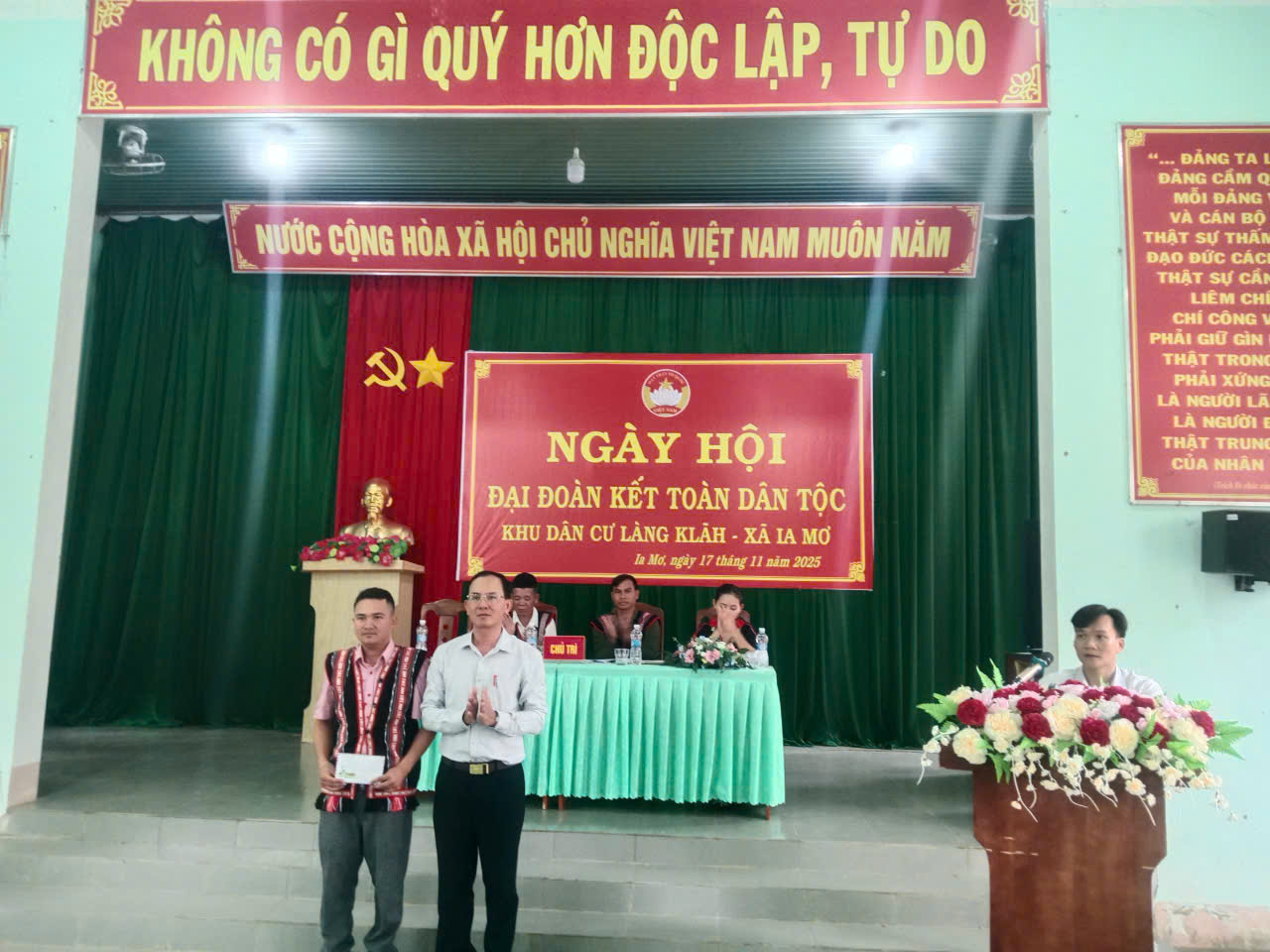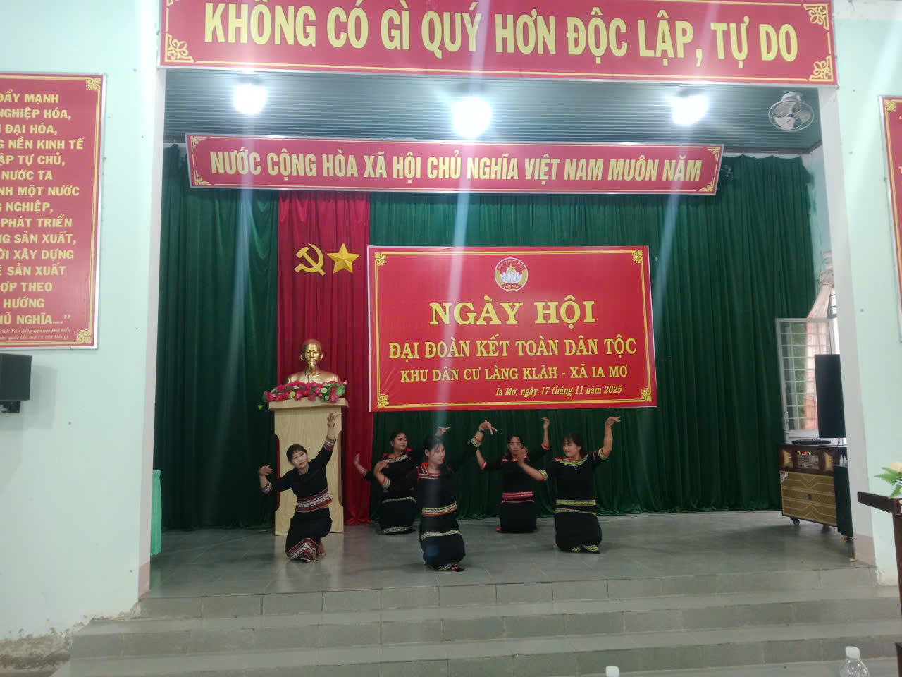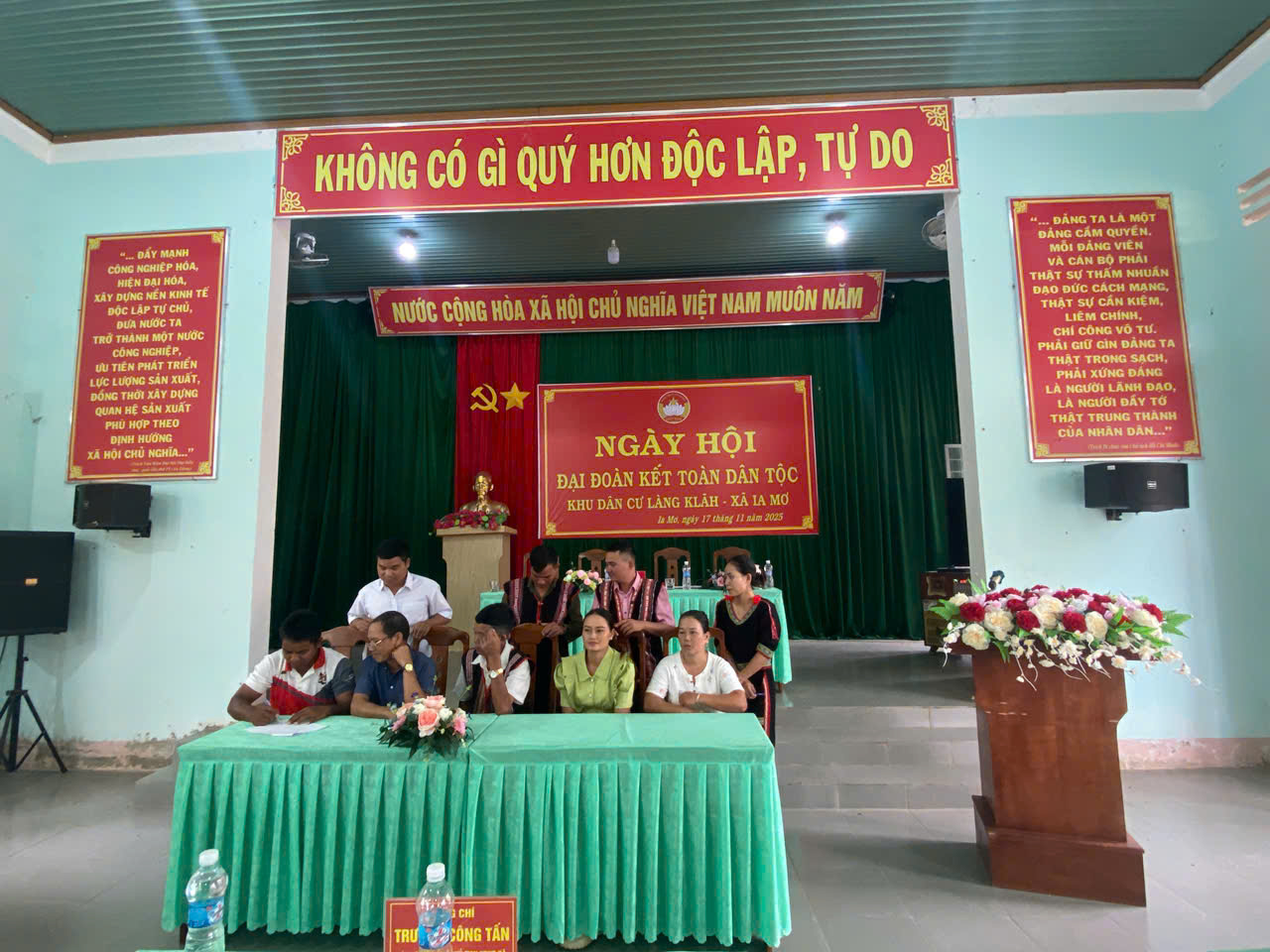 Trong không khí phấn khởi của cả nước thi đua lập thành tích chào mừng kỷ niệm 95 năm Ngày truyền thống Mặt trận Tổ quốc Việt Nam (18/11/1930 - 18/11/2025), sáng ngày 17/11/2025, Làng Klăh – xã Ia Mơ long trọng tổ chức Ngày hội Đại đoàn kết toàn dân tộc năm 2025. Đây là thôn, làng được xã Ia Mơ chọn làm điểm để rút kinh nghiệm trong việc tổ chức cho các thôn, làng còn lại của xã.